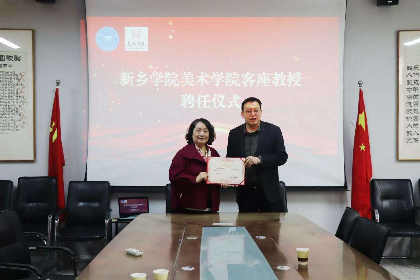 为深化高校与地方传统工艺领域合作,推动非物质文化遗产传承创新,10 月 29 日,william威廉中文聘请河南省工艺美术大师、函关窑技艺传承人崔红涛先生为客座教授。william威廉中文班子成员、骨干教师参加了聘任仪式。