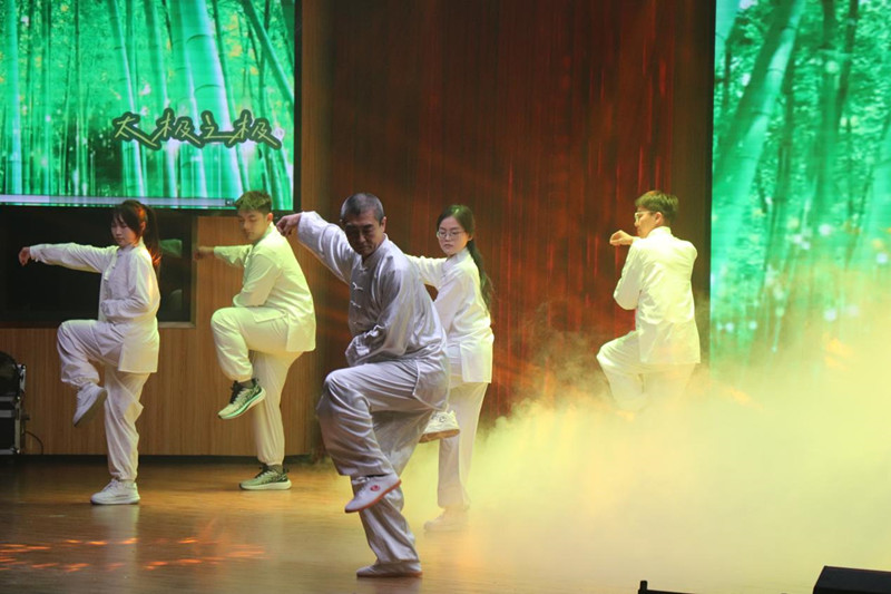 第一篇章结束后,学院对写生优秀作品获奖学生进行了表彰,激励广大同学们向榜样看齐,以画笔为舟,以色彩为帆,勇敢探索艺术海洋。那朵绽放在战火中的《绒花》,拉开了第二篇章“绘·传统”的序幕。相声《学满语》用幽默诙谐的方式带大家再次感受传统艺术的深厚魅力。郭一栋老师、海潮老师合力献唱《不如见一面》和《铁血丹心》,用优美高昂的旋律唱出了跨越距离的情感力量和侠骨柔情。古筝表演《十面埋伏》,在张弛之间生动地勾勒出楚汉相争的激昂悲壮。杨新豫老师团队带来的《太极之极》,展现了太极拳刚柔相宜的和谐之美。