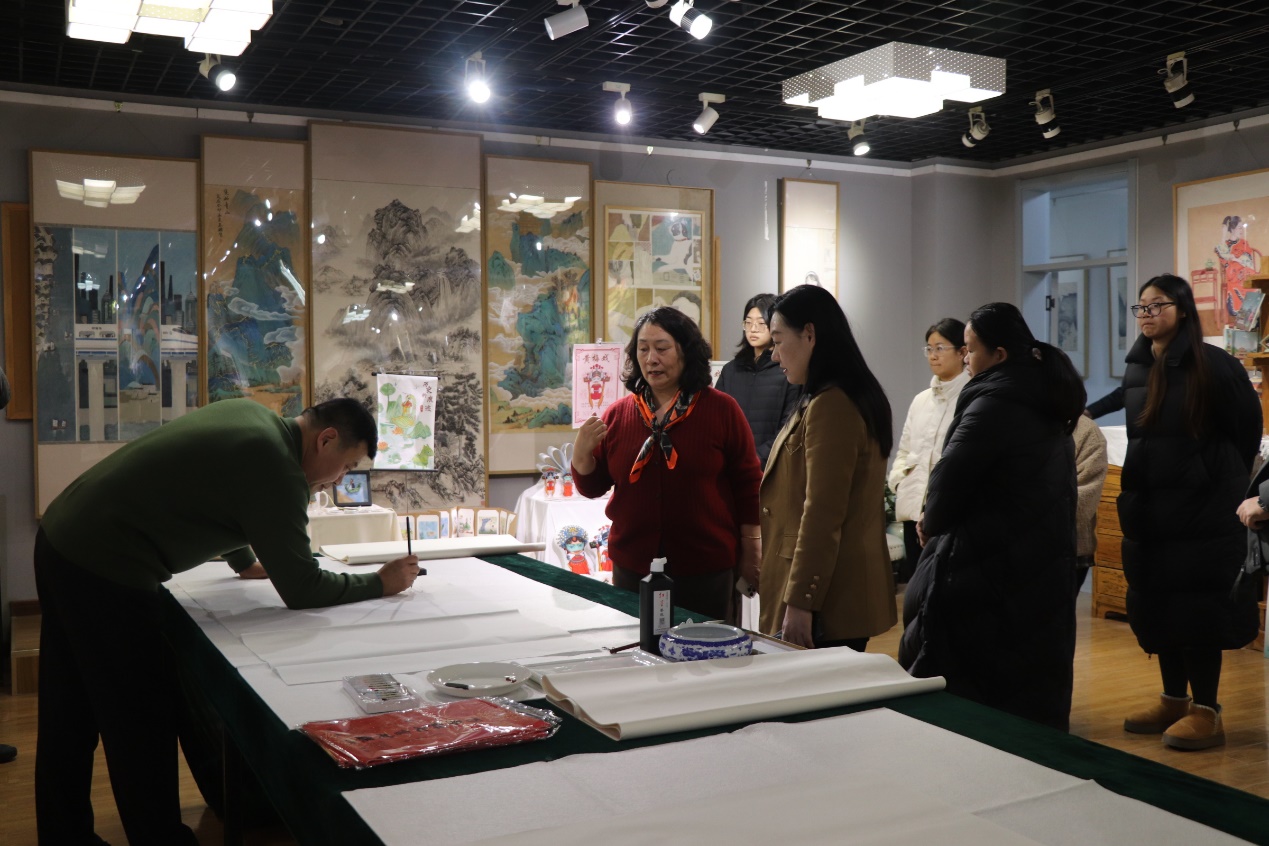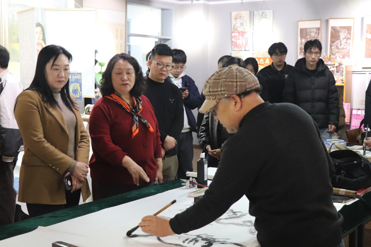 本次活动以书画为媒、以艺术迎春,旨在弘扬中华优秀传统文化,深化产教融合与校地协作,共同推进美育事业高质量发展。笔会现场,与会名家挥毫泼墨,即兴创作。作品或描绘太行巍峨、溪流潺潺,或展现藤花烂漫、意气昂扬,一幅幅笔墨精湛、意境深远的书画佳作跃然纸上,充分展现了艺术家们深厚的艺术造诣与对美育事业的真诚关怀。活动中,艺术家们将其现场创作的书画作品捐赠予william威廉中文,用于教学研究与馆藏陈列。