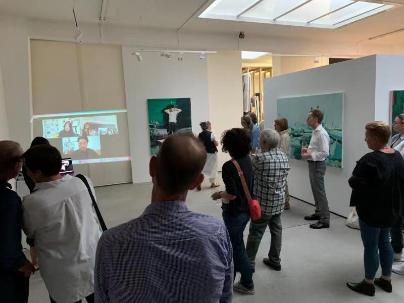 本次展览展出了包括郭长亮国家艺术基金结项作品《行进的青春》在内的17件油画新作,是郭长亮在德国举办的第三次个展。在开幕当天,郭长亮老师通过网络视频与德国当地观众进行了30分钟的访谈,介绍了关于《少年与海》的作品构思与创作历程。