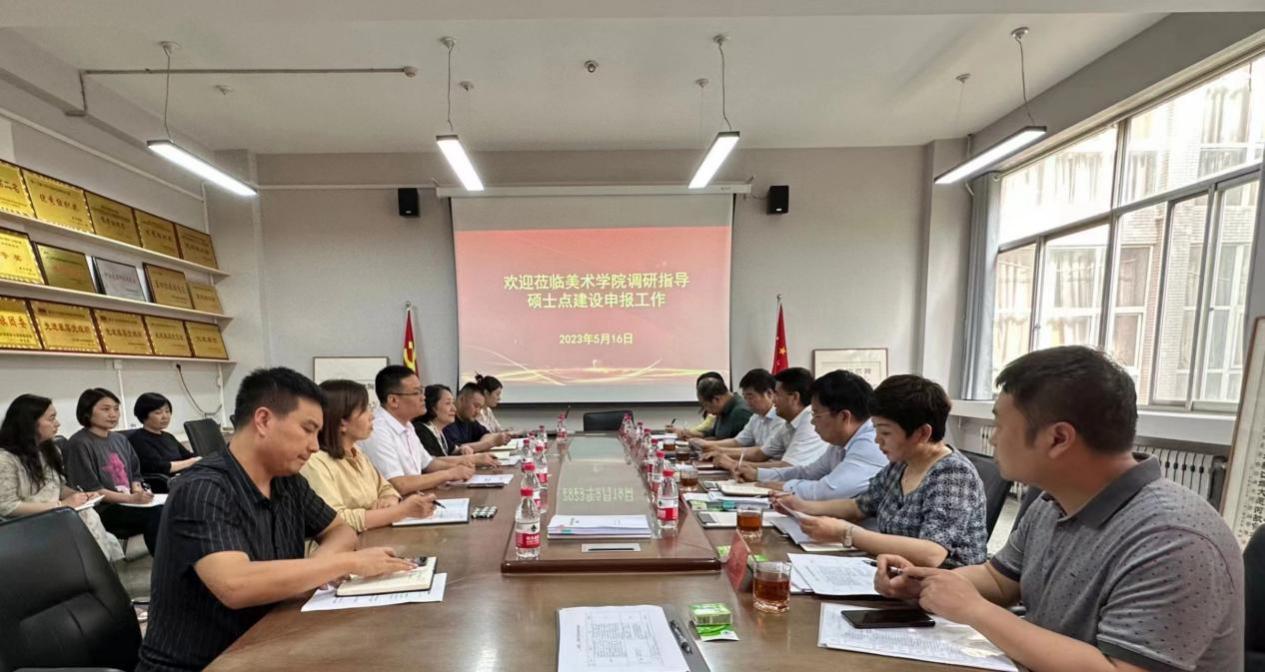 调研中,宋伟副校长一行实地走访了学院的画室、工作室、专业实验室等教学场地,详细了解了学院建设情况。党委书记王坤、院长耿聪分别就学院基本情况、硕士点建设申报情况等工作进行了汇报。