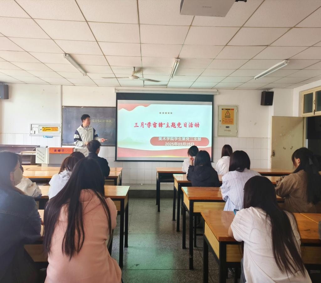 为弘扬新时代雷锋精神,推动党员志愿服务常态化,3月25日,学生第三党支部开展了“传承雷锋精神,践行使命担当”主题党日活动。活动由宣传委员栗奕翔主持,支部全体成员参加。
