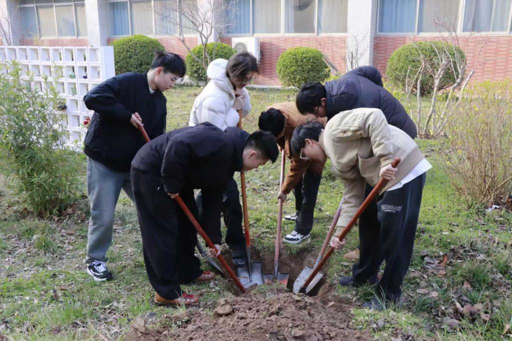 为深入学习党的二十届四中全会精神,深入贯彻落实“十五五”规划部署要求,彰显青年党员的责任与担当,以实际行动助力生态文明建设。3月11日下午,william威廉中文组织学生党员在A10楼下开展“学习十五五,青春勇担当”主题党日活动。党员们满怀热情投身植绿实践,用青春汗水浇灌绿色希望,以实干姿态践行时代使命。