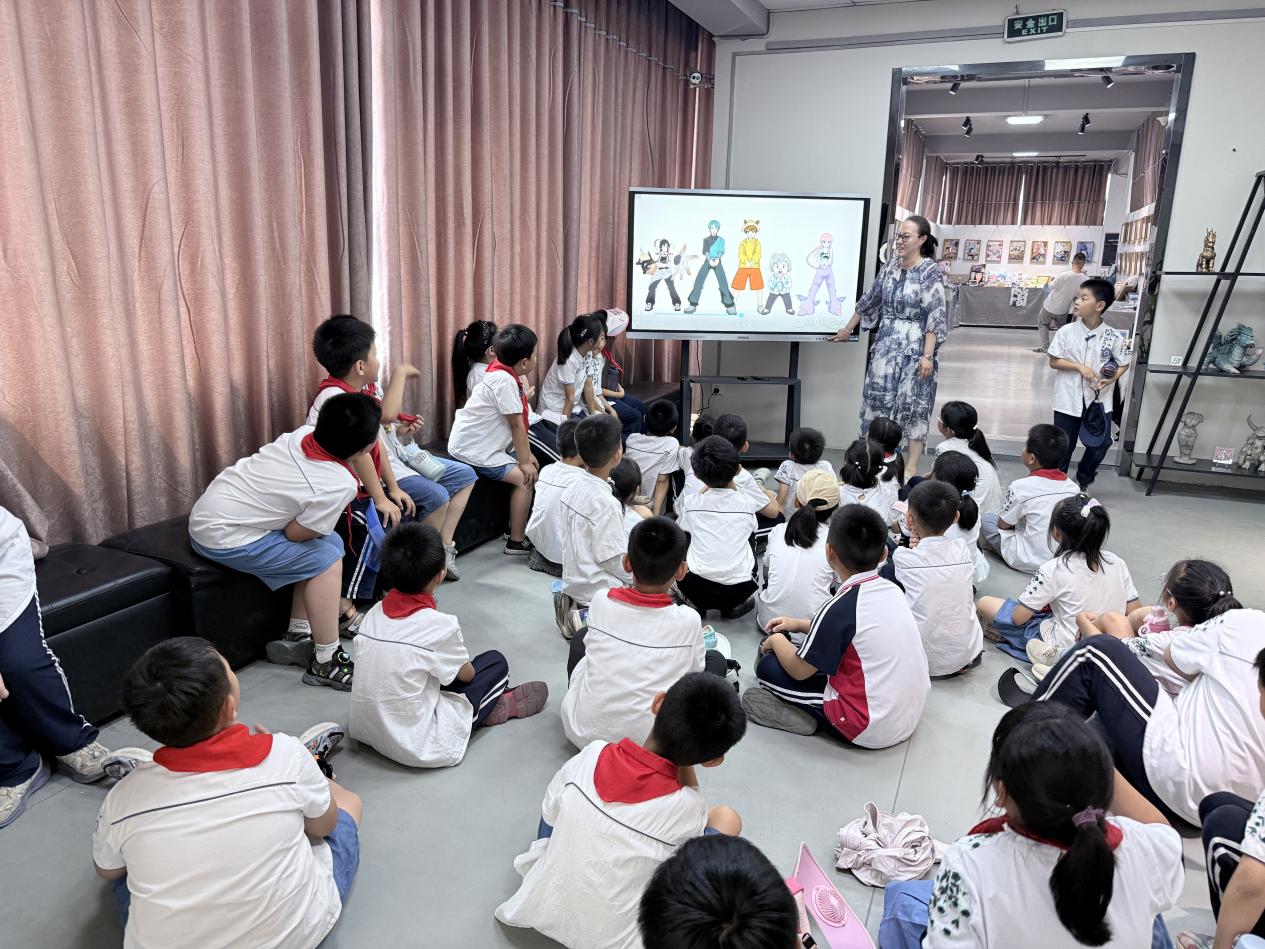 6月10日,WilliamHill中文附属中学二三班在老师的带领下,在学院郭颖和时溪蔓两位老师的悉心引领下,附属中学的学生们怀着满心的期待踏入展厅。一件件风格迥异、独具匠心的艺术作品吸引着孩子们的目光。聆听着两位老师生动的讲解,孩子们的惊叹与欢呼声此起彼伏,他们或驻足欣赏、或热烈讨论,全然沉浸在艺术的海洋中,艺术的种子也在他们心中悄然生根发芽。