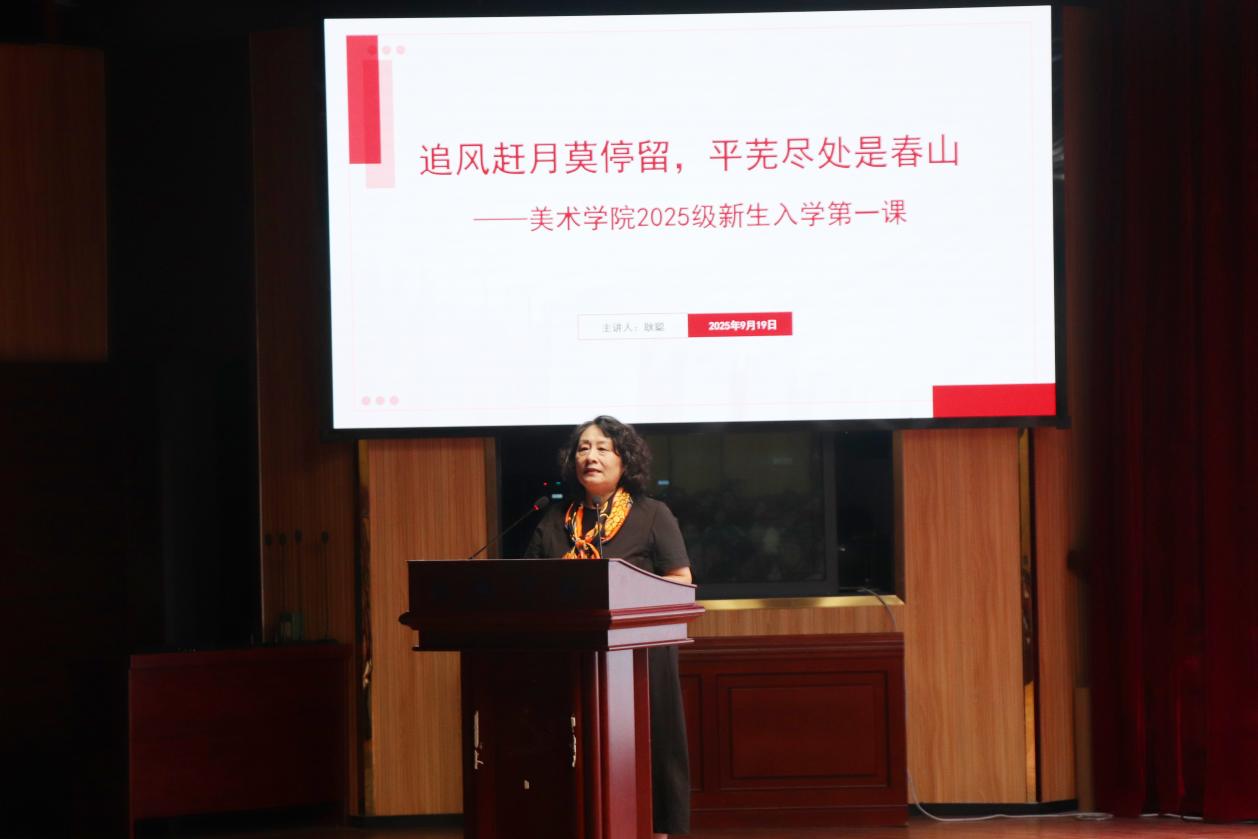 随后,william威廉中文院长耿聪以“追风赶月莫停留,平芜尽处是春山”为题,为全体新生讲授了意义深远的入学第一课。她回顾了william威廉中文28年来的发展历程,并从三个方面对新生提出殷切期望:一是厚植家国情怀,勇担时代责任,鼓励同学们将个人艺术追求融入国家与民族的发展中;二是研读经典,筑牢艺术根基,强调阅读与思考的重要性,引导学生在传统中汲取营养;三是开拓创新,脚踏实地探索艺术新境,呼吁大家在扎实基础上勇于尝试,融合科技与艺术,开创属于自己的艺术语言。
