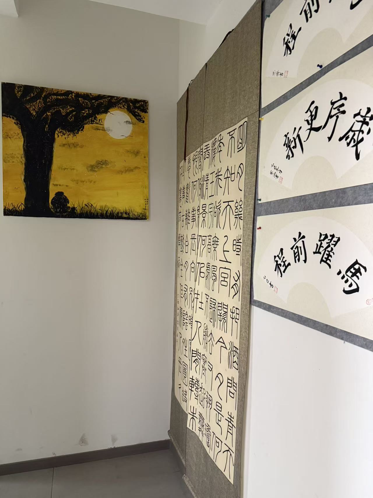 在五星书画院负责人的陪同下,教研室教师团队参观了书画院的创作展厅、名家工作室及艺术交流中心。从传统书法绘画创作到当代艺术设计融合,从线下展览策划到线上艺术推广,五星书画院展示了其"守正创新"的发展理念。教师们近距离观摩了书画创作全过程,深入了解传统艺术在当代设计语境下的创新表达方式。