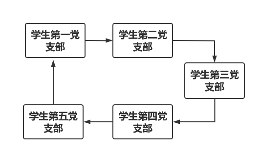 教师两个党支部进行“互观互检”,不与学生支部交叉。学生五个党支部参照下图进行: