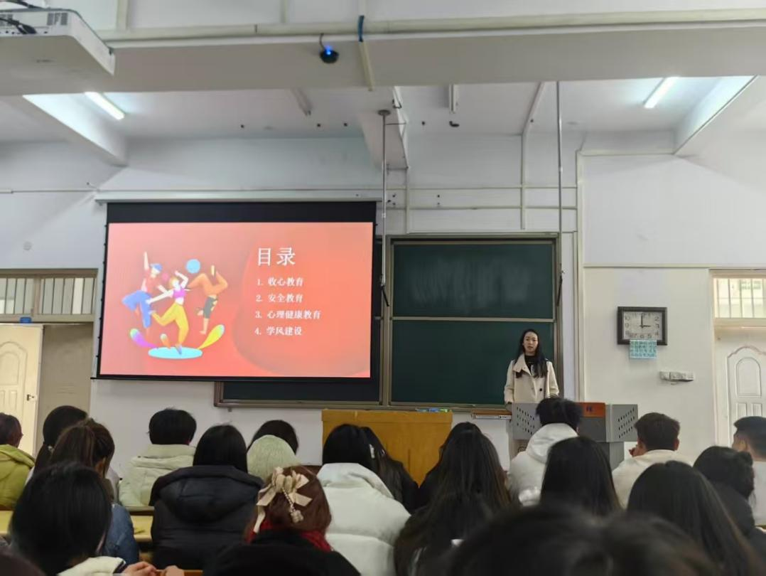 主题班会从“新学期新规划”、“校园安全教育”、“心理健康教育”、“学风建设教育”四方面重点展开,以ppt展示、案例分析等喜闻乐见的方式引导学生以积极的身心状态、良好的精神风貌迎接新学期。