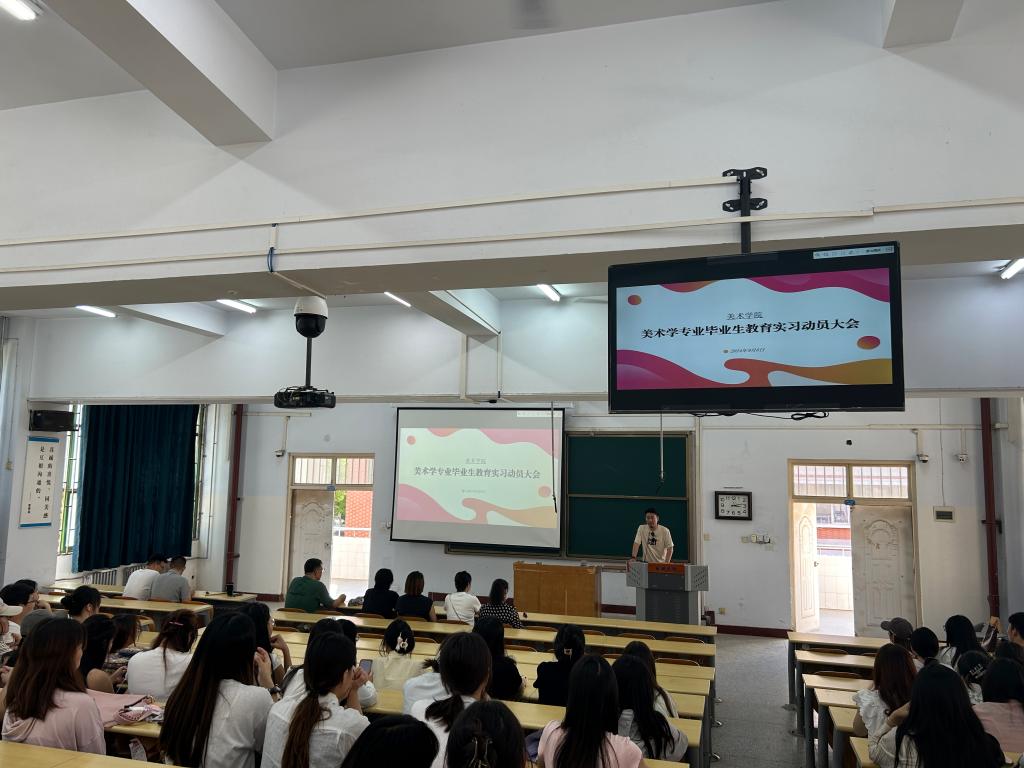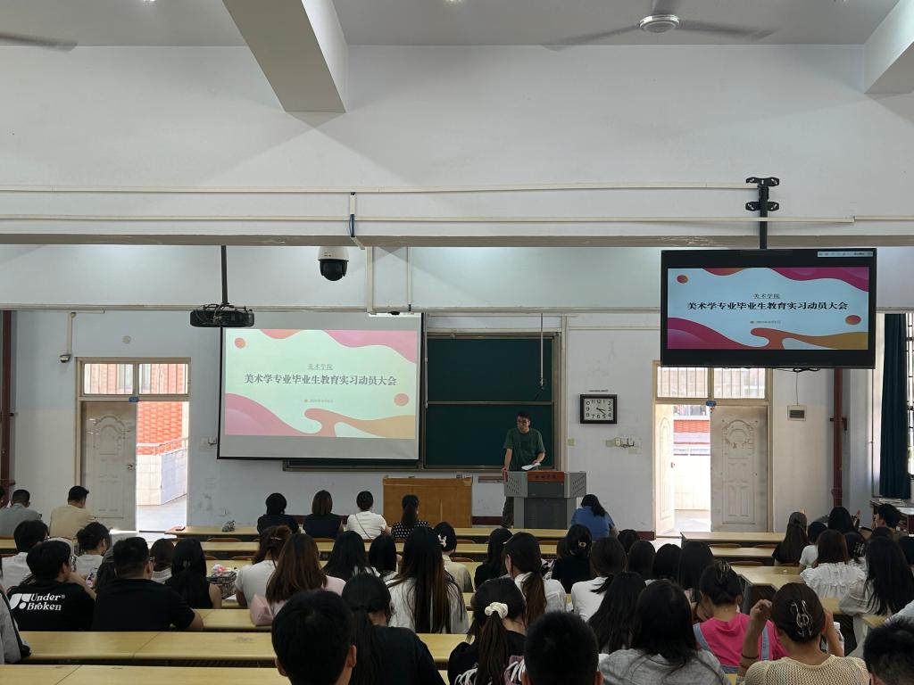 为促进2025届师范生教育实习工作的顺利开展,9月6日下午,在A01-225教室召开2025届美术学专业师范生教育实习动员大会。副院长毛璞、美术学教研室郭长亮等指导教师代表,2025届美术学专业全体学生参加会议。会议由辅导员郭峰主持。