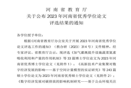 根据《河南省教育厅关于公布2023年河南省优秀学位论文评选结果的通知》(教研〔2024〕369号),我院两篇本科毕业论文(设计)荣获2023年河南省优秀学士学位论文(毕业设计)。