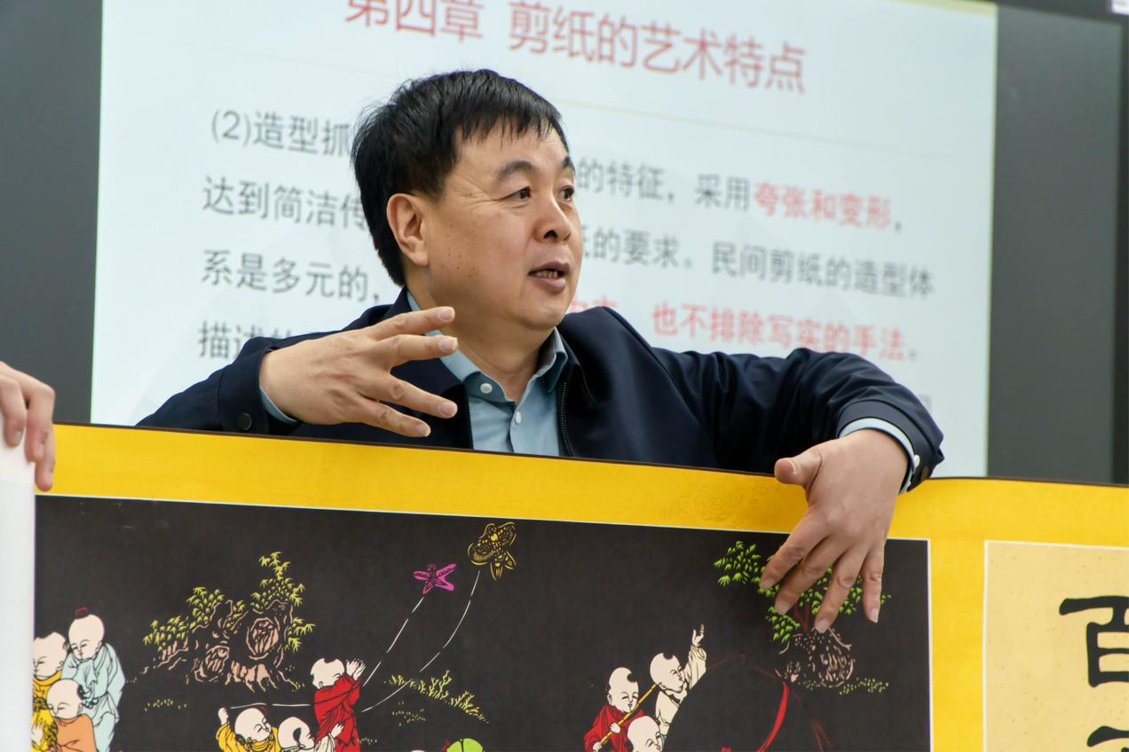 讲座过程中,张教授与现场师生进行了互动交流,并示范了一些剪纸技巧,赢得了在场师生的热烈掌声。